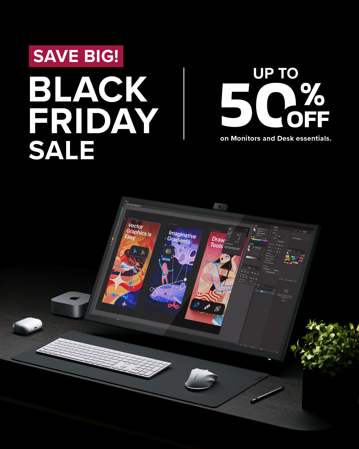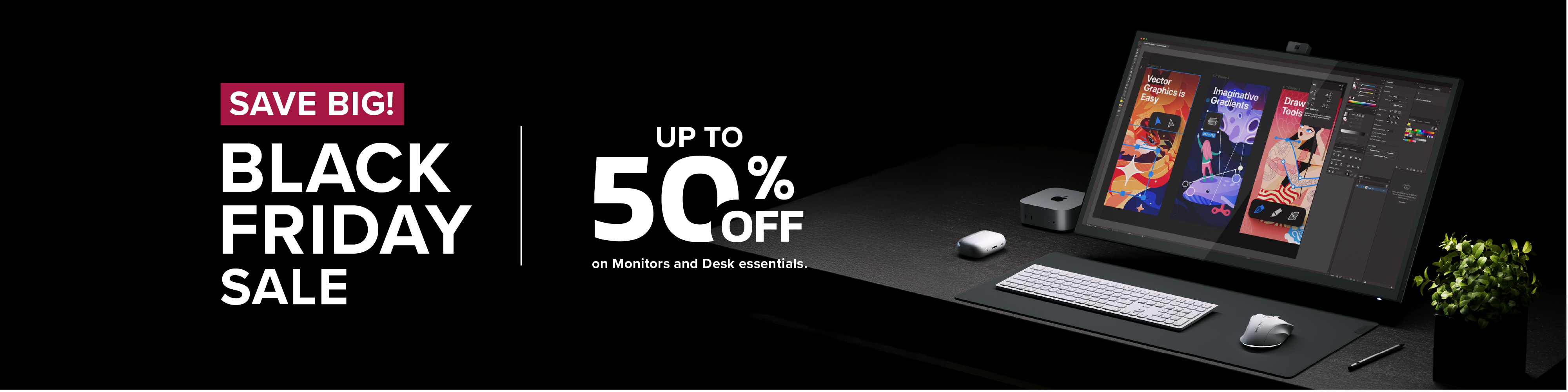 Find incredible Black Friday tech deals of up to 25% on our cutting-edge monitor collection, which includes stunning 4K, 5K, and 6K monitors designed for professionals, designers, and creators. Upgrade your desk and save up to 25% on ergonomic monitor arms, risers, and other accessories for all-day comfort. Take advantage of 25% off our high-definition webcams for crystal-clear communication, and increase productivity with ergonomic, wireless mouse and keyboard sets designed for both Mac and Windows users.