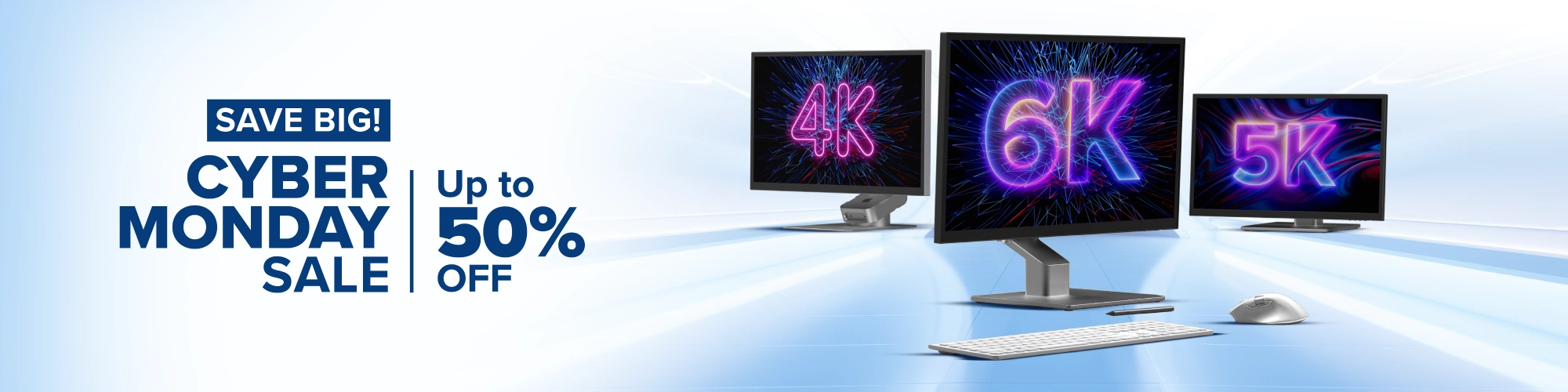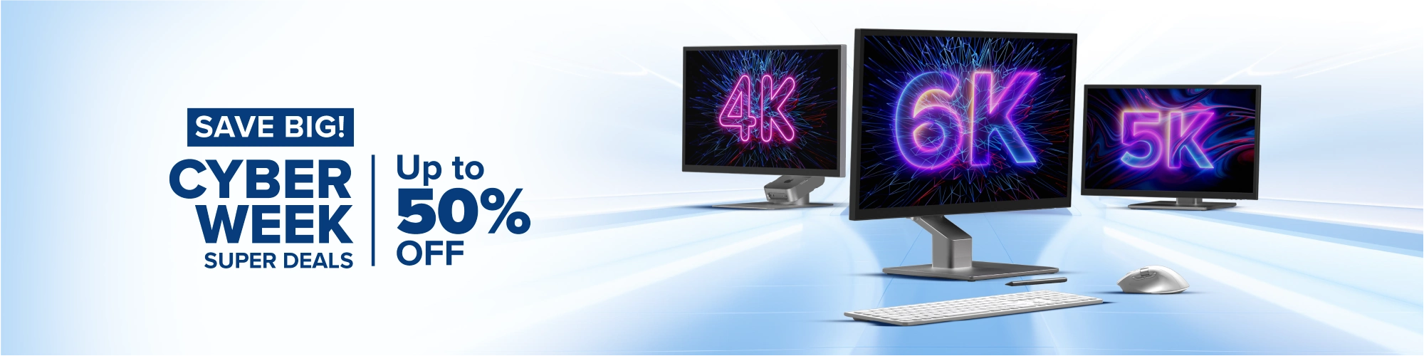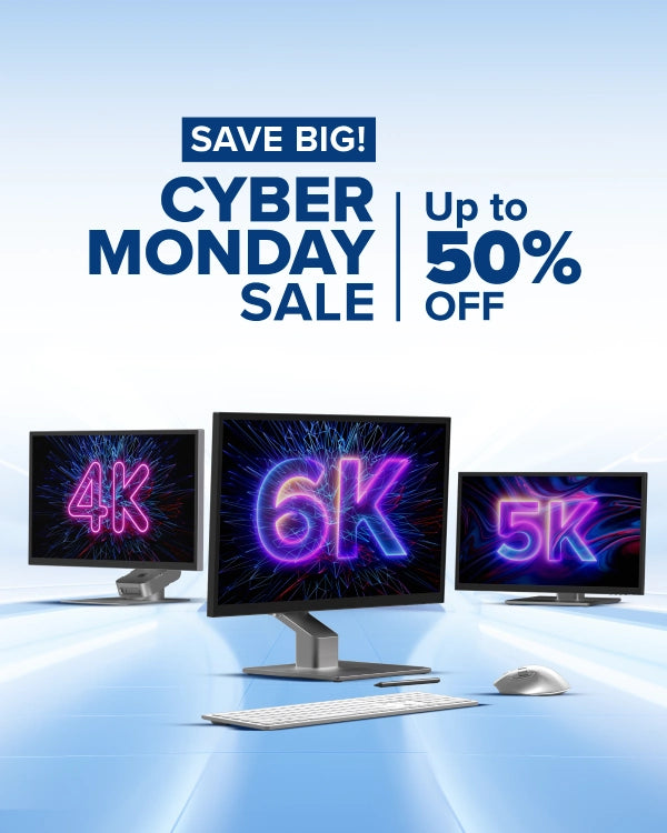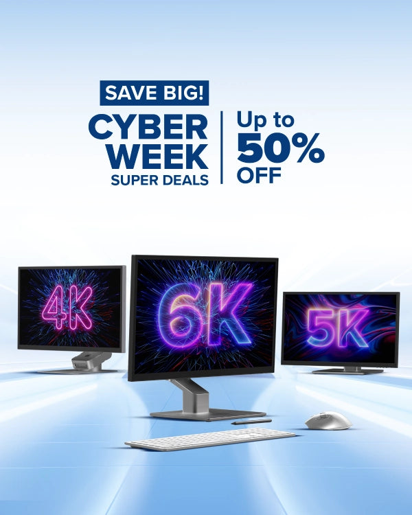 Find unbeatable Cyber Week deals of up to 25% on our cutting-edge monitor collection, which includes stunning 4K, 5K, and 6K monitors designed for professionals, designers, and creators. Upgrade your desk and save up to 25% on ergonomic monitor arms, risers, and other accessories for all-day comfort. Take advantage of 25% off our high-definition webcams for crystal-clear communication, and increase productivity with ergonomic, wireless mouse and keyboard sets designed for both Mac and Windows users.